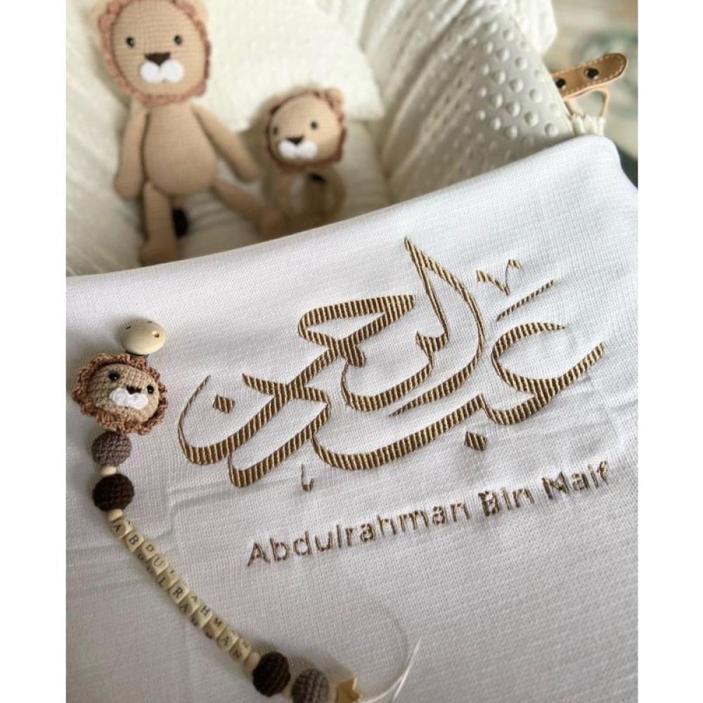 - اللحاف: مطرز باسم المولود حسب الطلب.