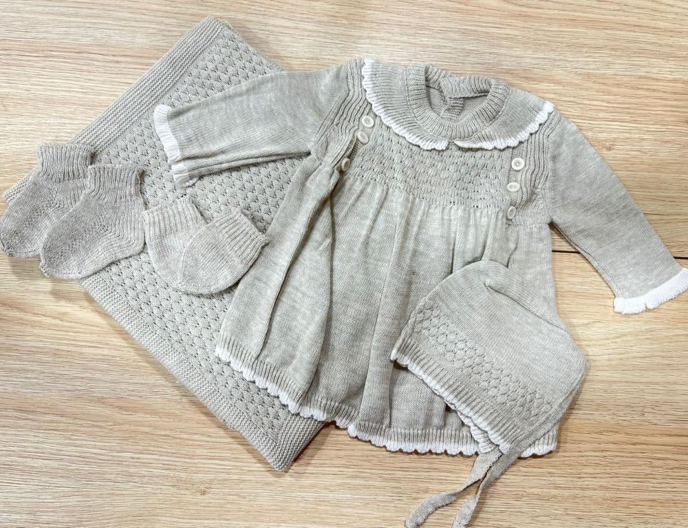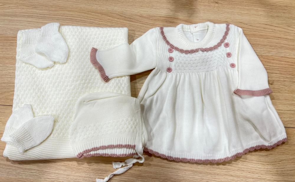 يجمع الطقم بين الجمال والدفء والجودة التركية المضمونة، ليمنح طفلتك إطلالة مميزة منذ أول أيامها.
