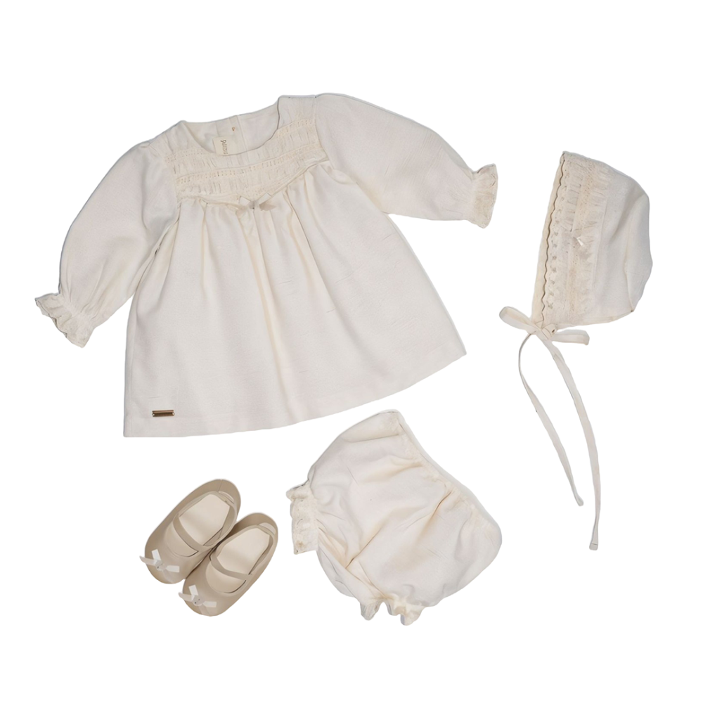 طقم ميني جنتل فستان بناتي - 4 قطع - كتان - بيج