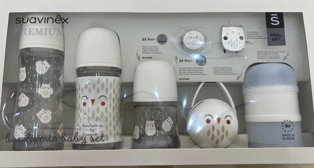لأن أطفالنا حديثي الولادة يستحقون اهتمامنا الكامل، تعتبر المجموعة الترحيبية هدية مثالية للمولود الجديد لأنها تحتوي على كل ما تحتاجينه لإطعام طفلك. المجموعة تحتوي: 3 زجاجات أطفال من مادة البولي أميد مع حلمة سيليكون فسيولوجية من sx pro - زجاجة 150 مل بتدفق بطيء 0+ م - زجاجة 270 مل بتدفق متوسط 3+ م - زجاجة 360 مل بتدفق كبير +6 م - لهاية بحلمة سيليكون فسيولوجية من 0-6 أشهر - مشبك لهاية مع شريط - حافظة لهاية ثنائية - موزع حليب بودرة