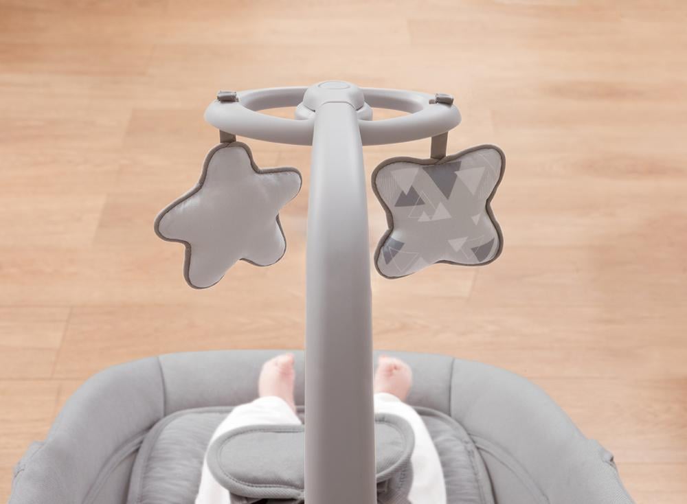 - يعتبر من أفضل الكراسي حيث أنه يتوفر بهزاز لاسلكي مبتكر يوفر حركات أفقية متناغمة تساعد على تهدئة الطفل وتطوير ذكائه العاطفي بشكل طبيعي ومريح.