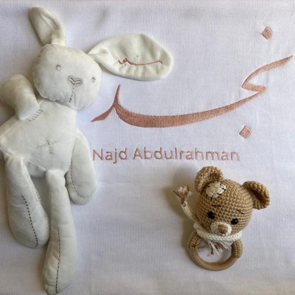تخفيضات حتى 60% على بطانيات المواليد بتطريز الاسم في السعودية