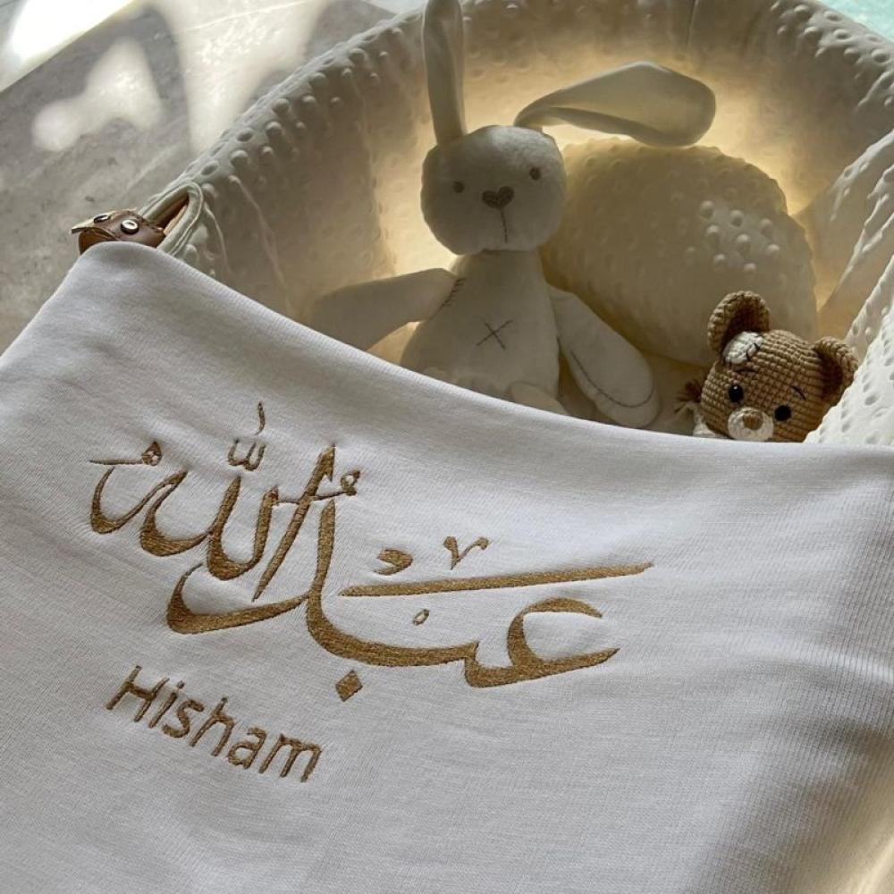 اختيار مفارش مواليد بتطريز اسم عبدالمجيد يعني اختيار الأناقة والجودة. كل مفرش مصمم ليكون قطعة مركزية في تجهيزات مولودك مع تطريز دقيق يعكس العناية بأدق التفاصيل.