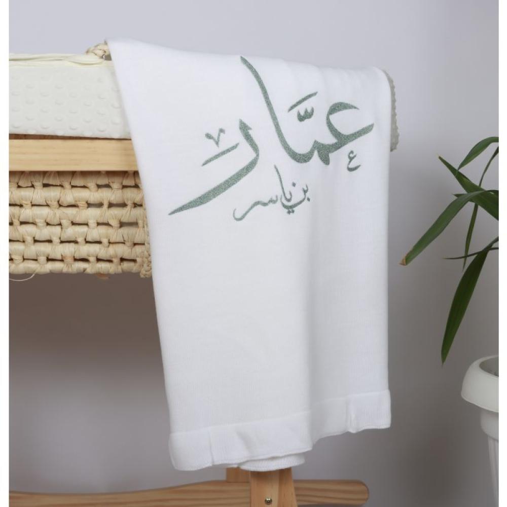 - بطانية مواليد تريكو تطريز اسم "عبد العزيز" - تطريز بالكمبيوتر 100% حسب الطلب