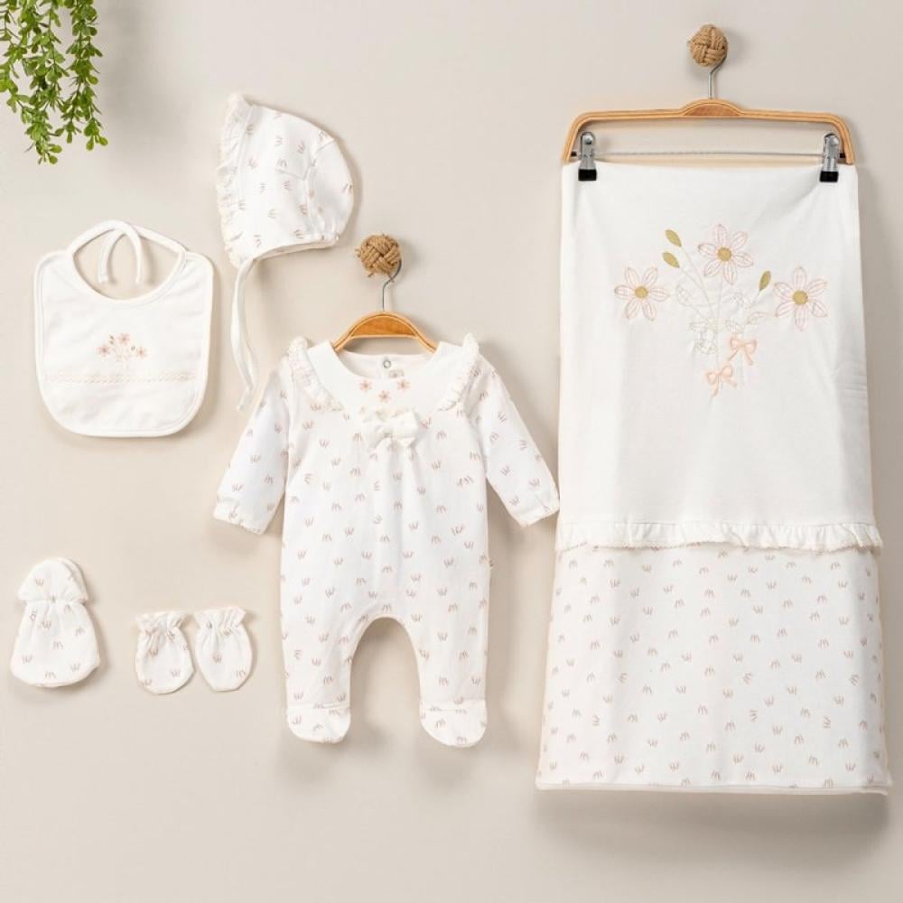 يمنح طقم ميني جنتل لطفلتك إحساسًا فائقًا بالراحة بفضل تصميمه الناعم المصنوع من 100% قطن، مما يجعله مثاليًا لبشرة حديثي الولادة من 0 إلى 3 أشهر. يتميز بنقوش رقيقة وتطريزات زهرية تضيف لمسة أنثوية لطيفة، ليكون خيارًا مثاليًا للاستخدام اليومي أو المناسبات الخاصة.